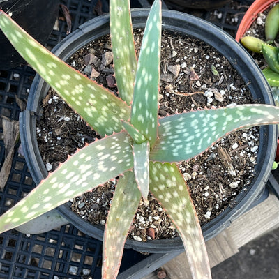 This type of Aloe plant is a very easy-care and drought-tolerant plant for your dry gardens or patio container garden. It has low water needs and can tolerate partial to full sun conditions.
