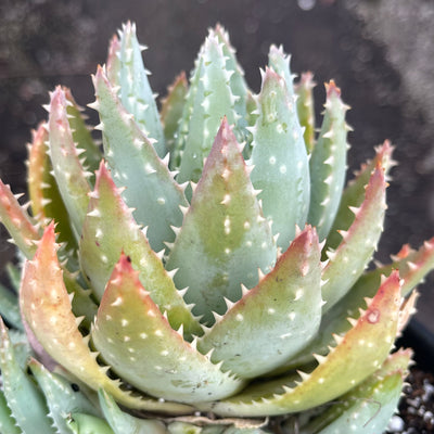 Aloe ‘Sun Sparkler’ is a unique and brilliant succulent plant that would make a fantastic addition to any garden. It has wide traibgular shaped leaves with dramatic ‘Sparkly’ white spots.