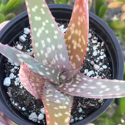 Aloe sinkatana has thick leaves with spotted patterns. The leaves will take on shades of red and pink with increased sun exposure.