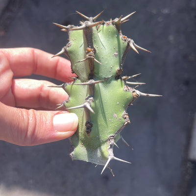 This is a cutting of the rare Euphorbia coerulescens succulent plant. This Euphorbia is harder to find and will eventually grow into a large multi-branched shrub.