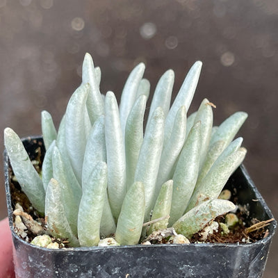 This Senecio is a succulent shrub producing long, narrow tubular silver-green leaves. Plant where it can enjoy full sun and have room to spread. This plant adds great color and texture to your arrangements and succulent gardens. It is used as filler to add height and texture to your container garden.